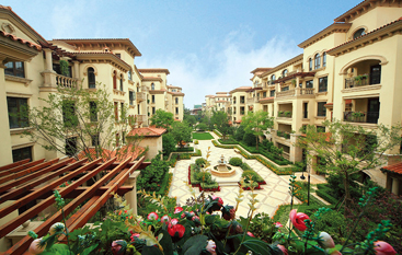 地中海多層公寓規劃布局采用圍合式的組團布局,注重豐富的庭院空間,整體布局較為靈活,注重院落圍合和鄰里交往關系的尺度處理,建筑立面層次豐富,強調細節和整體韻味。建筑布局注重與景觀的關系,將建筑融入景觀之中。