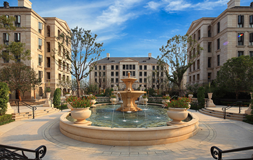 法式多層公寓系列的規劃采用法國古典主義建筑的布局方式,注重軸線關系、空間序列感和延續性。要求規劃結構明確,強調空間的均衡和穩定,空間層次清晰,脈絡完整。庭院設計強調私密性,創造圍合空間。