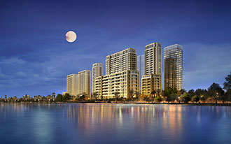 在城市公寓的營造上,藍城考慮到是城市和諧的天際輪廓線和城市文脈的對接,是更注意從細節去滿足中國人不斷上升的居住審美需求。藍城認為,房產品要講究附加值,沒有人文價值的園區無疑是一座“泥城”。營造者們應該為人們提供安定、美好的生活的氛圍,一個交流、活動的場所。這對設計師來說,則意味著要花更多的心血和工夫。在很多高層公寓中,設計師們將門廳、連廊以及一些半室內半室外的空間安排成酒吧、茶座等供大家交流的場所、空間,盡量營造出“天涯若比鄰” 的居住氛圍,讓鄰居之間能夠自由自在地、無拘無束地交談。這樣的細節在藍城的營造歷程中數不勝數,也成為藍城特有的營造方式和語言。